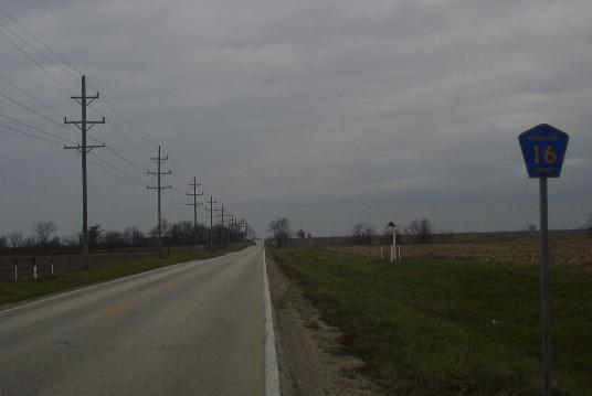 Kankakee County Highway 16 runs east-west across the Will/Kankakee County Line. It starts from the junction with Illinois State Route 50 and runs east to near Kankakee County Highway 17. KCH 16 does not pass through any towns in Kankakee County. KCH 16 intersects the following highways in Kankakee County. Illinois State Route 50, near Manteno. Kankakee County Highway 51, near Manteno. Kankakee County Highway 17, near Whitaker.