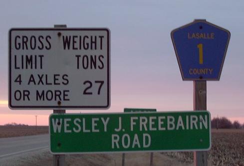 LSCH 1 is also Wesley J. Freebairn Road. A guide sign on LSCH 1 just north of U.S. Rt. 52/IL St Rt 23. Sign for which township you are in. NB LSCH 1 at LSCH 19. NB LSCH 1 in Harding. A guide marker at LSCH 22.