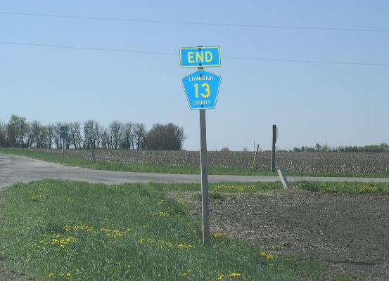 The northern end at LCH 28. The northern end marker. SB LCH 13 north of LCH 27. SB LCH 13 north of Graymont. NB LCH 13 near Graymont. SB LCH 13 north of LCH 8. WB LCH 8/SB LCH 13 near Waldo. SB LCH 13 south of LCH 8. Looking north down LCH 13 at the Mc Lean/Livingston County Line. The southern at near Meadows. The sotuhern end marker.