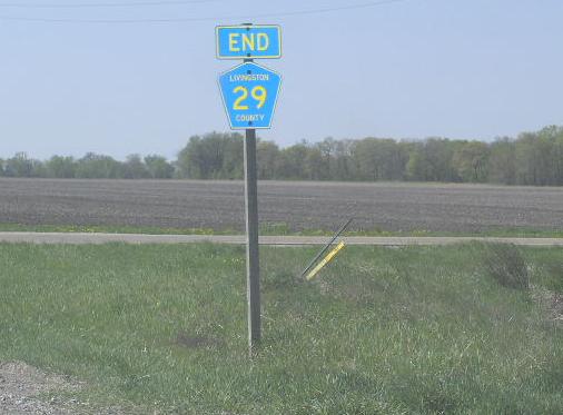 The northern end at IL St Rt 17. The northern end makrer. SB LCH 29 south of IL St Rt 17. SB LCH 29 near Cornell. The southern end at IL St Rt 23. The southern end marker.