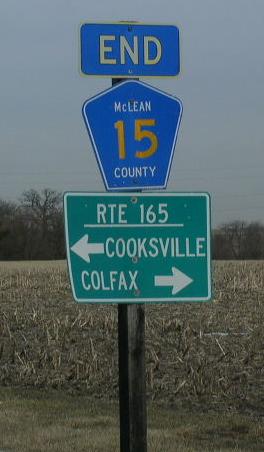 Mc Lean County Highway 15 is a main north-south highway in Eastern-Mc Lean County. This connects the Colfax Area to the southeastern portions of the county. McLCH 15 passes through the following towns. Arrowsmith