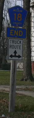 The western end in Danvers. The western end marker at Danvers. Looking east along McLCH 18 in Danvers. WB McLCH 18 east of Danvers. WB McLCH 18 west of Yuton. Looking west down Mc LCH 18 at Yuton. Mc LCH 18 sign and guide sign on Mc LCH 70 at Yuton. The eastern end at Yuton. The eastern end marker.