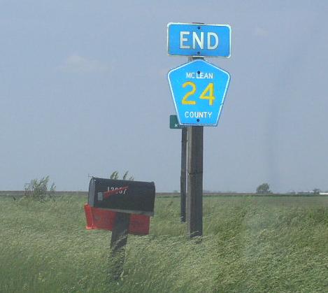 The western end of Mc LCH 24 at the Mc Lean/Tazewell County Line. The western end marker. Looking west along McLCH 24 near IL St Rt 122. The eastern end at IL St Rt 122. Eastern end marker.