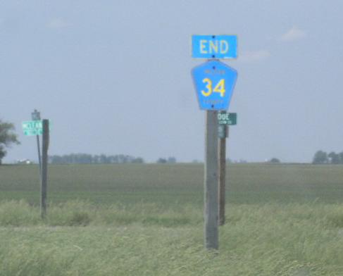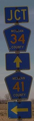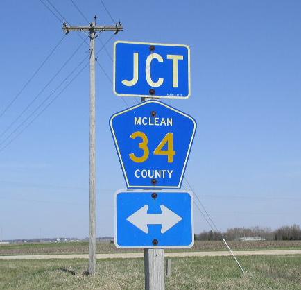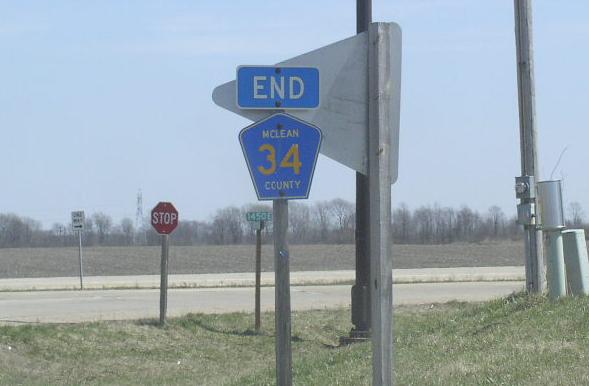 The western end at the Mc Lean/Tazewell County Line. The western end marker. WB Mc LCH 34 near Stanford. WB Mc LCH 34/NB Mc LCH 59 near Stanford. A BGS on NB I-55 for the exit to Mc LCH 34. Looking west on Mc LCH 34 at I-55. A junction marker on NB Mc LCH 41. WB McLCH 34 south of Bloomington. The eastern end of Mc LCH 34 at U.S. Rt. 51. The eastern end marker.