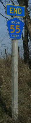 Looking south along McLCH 55 at the Woodford/Mc Lean County Line. Northern end marker.