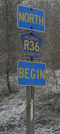 NB PCH R36 north of U.S. Rt. 24/IL St Rt 9. The NB begin marker. The southern end marker.