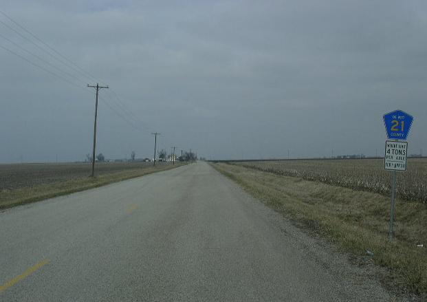 NB DWCH 21 north of IL St Rt 54. A DWCH 21 guide marker.