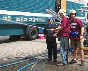 The boys fought fire in the streets, we watched streets performers and ate from vendors. There were so many people filling the streets. The party in the evening was right in front of the Royal Palace. There was entertainment and fireworks. We had a great seat in the middle of it all, right beside the beer gardens. The boys had some Belgian Beer and I got the excellent hat. Very fashionable I think, don't you agree?