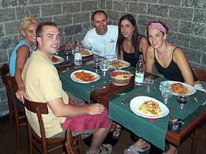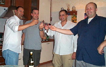 Now back to the food. We ate pasta and pizza in restaurants and in peoples kitchen. We ate it for lunch and supper as well as for a 4am snack. I loved every minute of it. The photo above is our 4am venture with Alfredo and Klodia. The boys are shooting Grappa after their meal. Pilks quite enjoyed the wine, grappa and any Italian tradition he came across.