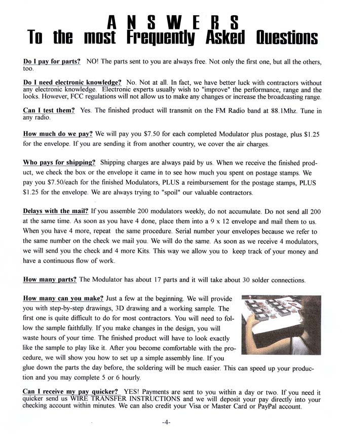 I received the FM Modulator and it works fine. I am excited about this opportunity. You don't know how skeptical I was about just sending off $250. Your product is great and I look forward to being a part of the team. I am sending you the letter you require in Step 3, will be looking forward to receiving my first FM Modulator. Again, thank you for this opportunity and keep up the great work. Obviously I am pleased with your responses and especially the product. Sincerely, John Barry.