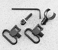 It's necessary to have certain measurements to select the right parts. I took the SU-16 owner's manual with me. First, I chose "Uncle Mike's" model # QD-115-CFL sling mount package for Magnum Bands. The SU-16 barrel is tapered from 5/8" to 3/4" from muzzle to hand guards. The package contains a split band that mounts snugly on the barrel and can be slid up or down before tightening the set screw to secure it in place.