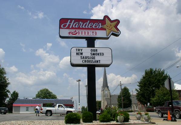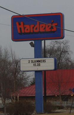 | A sign for a Hardee's in Jacksonville, IL. (June, 2004) |