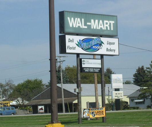 A sign for the Wal*Mart/Sullivan's in Harvard, IL. (October, 2006) |