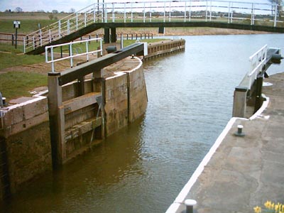 | Take your boat into the lock. This can be driven in, or pulled in with the mooring ropes. You can see the line of the CILL in this photo. |