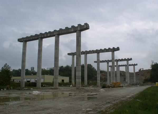 | The piers for the highway coming of the south bluff. (Sept. 2006) |