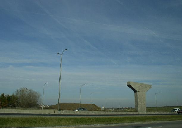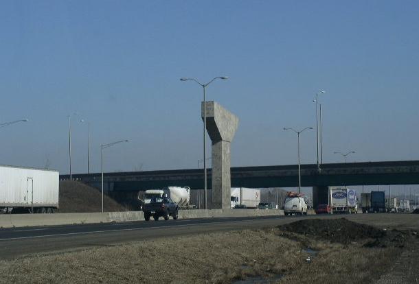| Looking at the piers for the flyover ramp for traffic from SB I-55 to SB I-355. (Sept. 2006) |