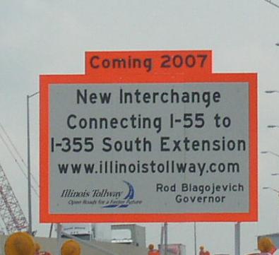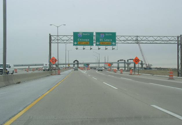 | Looking at SB I-55 as the ramp to I-355/Joliet Rd is being rebuilt. (Sept. 2006) |