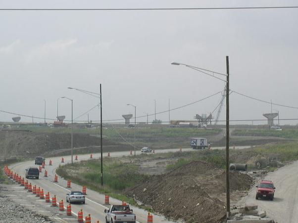 | Looking at the flyover ramp that will carry traffic from SB I-355 to NB I-55. (Sept. 2006) |