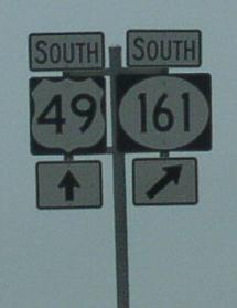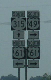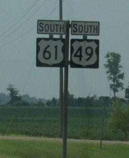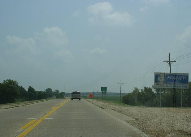SB U.S. Rt. 49 on the Mississippi River bridge. SB U.S. Rt. 49 at the Mississippi Welcome sign. SB U.S. Rt. 49 near Lula. SB U.S. Rt. 49/61 near Coahoma. NB U.S. Rt. 49/61; EB U.S. Rt. 278 near Clarksdale. A BGS on NB U.S. Rt. 61; EB U.S. Rt. 278/MS St Rt 322.