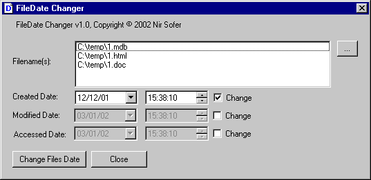 After you run the utility, follow the instructions below in order to change the dates of one or more files: