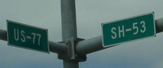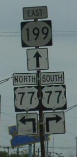 NB U.S. Rt. 77 in Ardmore. NB U.S. Rt. 77, north of Ardmore. NB U.S. Rt. 77 near Caddo Creek, north of Ardmore. The NB lanes are the original lanes. This highway was widened to 4-lanes and the old bridge is still used. The old bridge over Caddo Creek. NB U.S. Rt. 77 at OK St Rt 53.