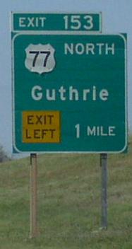 U.S. Federal Route 77 is a north-south highway in Central Logan County. From Guthrie north to the Logan/Noble County Line, this highway is a surface highway. U.S. Rt. 77 passes through the following towns in Logan County. Guthrie Mulhall Orlando U.S. Rt. 77 is multi-plexed in Logan County. Interstate 35, from the Oklahoma/Logan County Line to Guthrie.