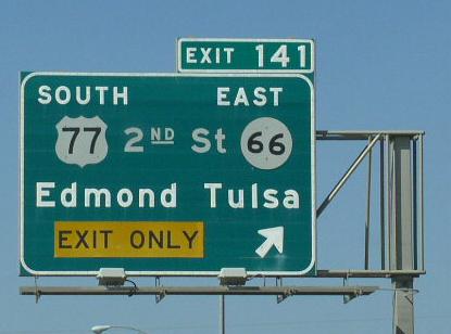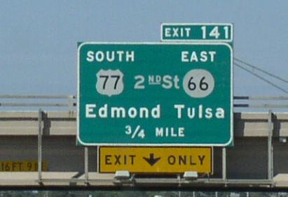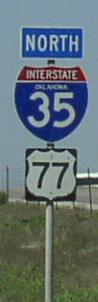 U.S. Federal Route 77 runs north-south through Oklahoma County. This highway runs along the many expressways of the Oklahoma City Metro Area. This highway enters from Cleveland County on Interstate 35 and runs up to Interstate 44. U.S. Rt. 77 runs along the Broadway Extension to the city of Edmond and runs back to Interstate 35 on 2nd Street. U.S. Rt. 77 passes through the following towns in Oklahoma County. Oklahoma City Edmond U.S. Rt. 77 is multi-plexed in Oklahoma County. Interstate 35, from the Oklahoma/Cleveland County Line to near Lake Aluma. U.S. Rt. 62, at Oklahoma City. Interstate 40, at Oklahoma City. U.S. Rt. 270, at Oklahoma City. Interstate 44, at Oklahoma City.