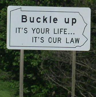 A buckle up sign on EB I-70 at the Pennsylvania/West Virginia State Line.