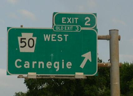 Pennsylvania State Route 50 is a east-west highway in South-Central Allegheny County. It runs from the Allegheny/Washington County Line to Nobelstown Road in Pittsburgh. PA St Rt 50 passes through the following towns in Allegheny County. Bridgeville Kirwan Heights Heidelberg Carnegie Pittsburgh PA St Rt 50 is not multi-plexed in Allegheny County. PA St Rt 50 intersects the following highways in Allegheny County. Interstate 79, near Bridgeville. Interstate 279, near Carnegie. U.S. Rt. 22, near Carnegie. U.S. Rt. 30, near Carnegie. Pennsylvania State Route 121, near near Green Tree. Pennsylvania State Route 60, at Pittsburgh.