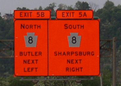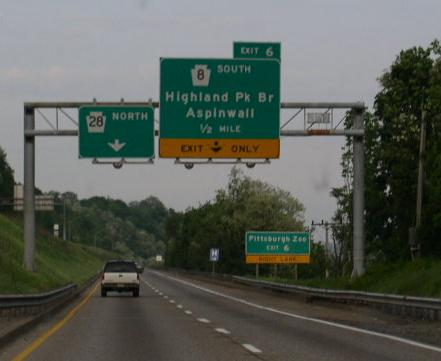 Pennsylvania State Route 8 is a north-south highway in Central Allegheny County. This runs from a juntion with Interstate 376; U.S. Rt. 22/30 to the Butler/Allegheny County Line. PA St Rt 8 passes through the following towns in Allegheny County. Wilkinsburg Pittsburgh Glenshaw Allison Park PA St Rt 8 is multi-plexed in Allegheny County. Pennsylvania State Route 380, at Pittsburgh. PA St Rt 8 intersects the following highways in Allegheny County. Interstate 376, near Edgewood. U.S. Rt. 22, near Edgewood. U.S. Rt. 30, near Edgewood. Pennsylvania State Route 380, at Pittsburgh. Pennsylvania State Route 380, at Pittsburgh. Pennsylvania State Route 130, at Pittsburgh. Pennsylvania State Route 28, near Etna. Interstate 76, (Pennsylvania Turnpike) near Gibsonia. Pennsylvania State Route 910, near Gibsonia.