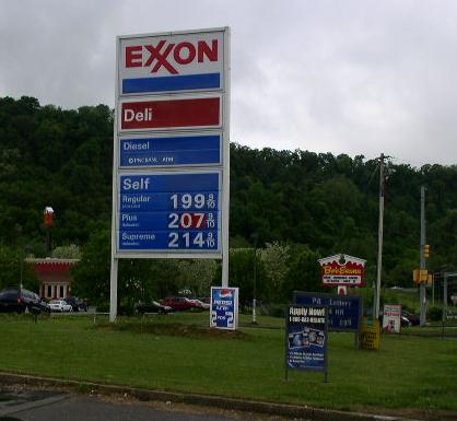 A Exxon sign on PA St Rt 910 at PA St Rt 28.