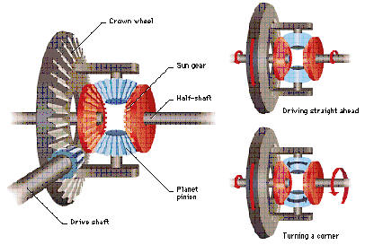 outer-driven wheel turns faster and further than the inner one. Drive is