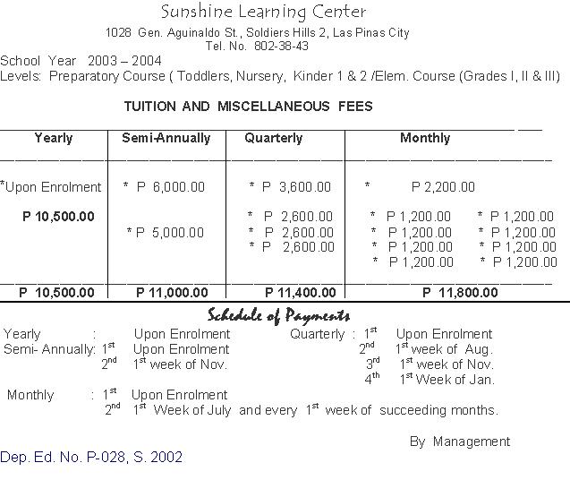 © Copyright. 2002 Sunshine Learning Center. All Rights Reserved.