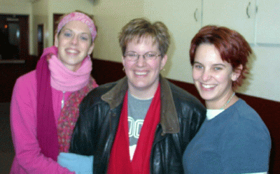 Dedicated Aces volunteers: Krista Shindle, Krista Curry and Angela. Krista is all in pink cause that is what makes her happy. Especially her pink scarf from the GAP which was a steal of a deal at $3 (reg $54).
