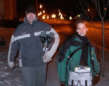 Countless hours goes into every Aces home game. The dorm is a big part of it all with Shack and Pilks in the penalty box and Ang and Krista doing the manager thing and the gate. Here we are after a hard night at "work".