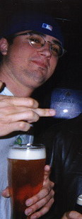 Dutch is our own boy wonder. He is a cynical, hermitic, dude who survives almost solely on Guinness. An honorary black man and devoted soccer hooligan, Dutch tries hard every day to emulate his heroes: Han Solo, Nigel Tufnel, Stuart McKenzie, and that guy on the LA Times commercial in the movies that says "get me a spinner". He can often be heard shouting in the streets, "Let's get pissed! |