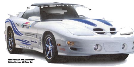 This is the 30th Anniversay Firebird. It has the Ram Air and pumps out 320 hp.These special edition Firebirds served as the pace car for the 1999 Daytona 500. I have seen these Firebirds many times and the only thing I don't like about it is the blue tinted wheels.