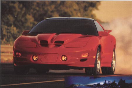 Here is the 2001 Pontiac Firebird T/A. It has the available WS6 Ram-Air package in the color Bright Red. For more info about this awesome car go to http://www.pontiac.com