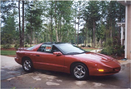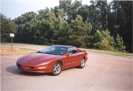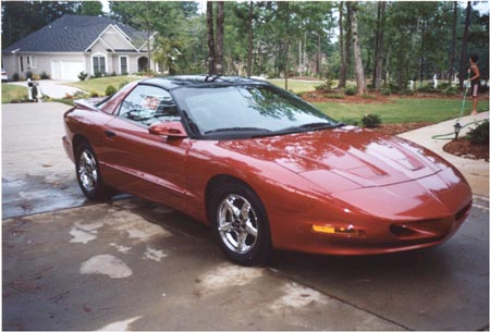 Welcome to the offical site of our (my dad and I)1997 Pontiac Firebird. We bought our Firebird in August of 1997. We were in the area of looking for a new car and that day we went to the dealership to test drive some Firebirds. A few days ago before we bought it my Mom and I went to go get her oil changed and I went off looking at new Firebirds. And there under a huge tent was the Firebird we have now. So the day that my dad and I went to the dealership I pointed that car out to him. We took a test drive and within 2 hours the dealer was handing us the keys. We came home in the car that we got to the dealership with and when we walked in the door we made up some big fib about how we really didnt see anything there. About an hour after we told her that little lie the dealer rolled up in our drive way in a brand new clean 1997 Pontiac Firebird. My Mom couldn't believe her eyes! We really pulled a fast one on her that time! We took her for a little drive and I think she really liked it. So after that she signed some papers and to this day we still have the 1997 Firebird. SO from that day we always said that I (Dane) picked the car out!!