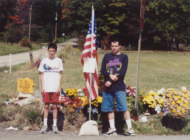 This is the memorial at the crash site. My brother and I are posing for the camera.