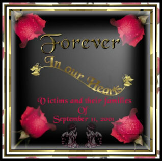 No words can express the sorrow and loss we feel In remembrance of all who lost their lives we offer our prayers, support and love All the pages below are dedicated to The September 11, Terrorist attacks on America from people of all backgrounds, races and religions God bless the USA If you find a broken link please e-mail me https://www.angelfire.com/music4/mockrock/Osama.html...A song about Osama bin ladenthis is an original song written by my husband http://tandtcreations.0catch.com/ www.norfolkbc.fsnet.co.uk/11_sep_2001.htm http://members.optusnet.com.au/~zabelpandc/tribute.htm http://www.geocities.com/weare5121a/memorialwtc.html http://cincerely.com/911 http://911.swafford-family.com http://deedee.8m.net/attackonamerica/America.html http://godblessourcountry.homestead.com/Godblessourcountry.html http://icerose.mybravenet.com/11092001.htm http://mandieleigh.tripod.com/911/ http://2001september11.homestead.com/tragedy.html http://www.geocities.com/slvrbraid/memorial.html http://www.geocities.com/xylara_99/america.html https://www.angelfire.com/il/stillsinging/AMERICA_under_attach.html http://www.geocities.com/USA.html http://2001september11.homestead.com/tragedy.html http://cowabash51.topcities.com/memorial.html http://www.geocities.com/tigrrlilys/ http://ads.x10.com/all/suspend.htm http://www.geocities.com/angelofdawn55/index.html http://www.geocities.com/angelsofpoetry http://www.geocities.com/angelsofpoetry2 http://www.geocities.com/heavensangels_01 http://www.angelsofcompassion.org http://www.geocities.com/carnidude69/BUDMANS911-1.html http://our.homewithgod.com/songviolin http://www.geocities.com/jumez123/HOPE4HURTINGPEOPLE.html http://www.geocities.com/ronnycopeh/index.html http://www.geocities.com/angelofdawn55/index.html http://www.geocities.com/linads2001/index.html http://ryuslilangel.net http://www.dreamwater.org/todayswomen/in-memory.htm https://www.angelfire.com/ky3/freebird56/Remembering.html http://www.geocities.com/angi0228/9-11-01.html https://www.angelfire.com/fl4/bethspage/tribute.html http://members.tripod.com/pmenier/Godblessus.html http://www.geocities.com/sassycats55_2000/MEMORIAL.htmlhttp://Bunniesplace.8m.com/WTC/Sept11.html http://www.geocities.com/Sweetpea500/tower2.html http://cheyellestreasures.homestead.com/alwaysremembersept11.html If you would like to add your own link please e-mail me