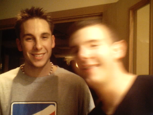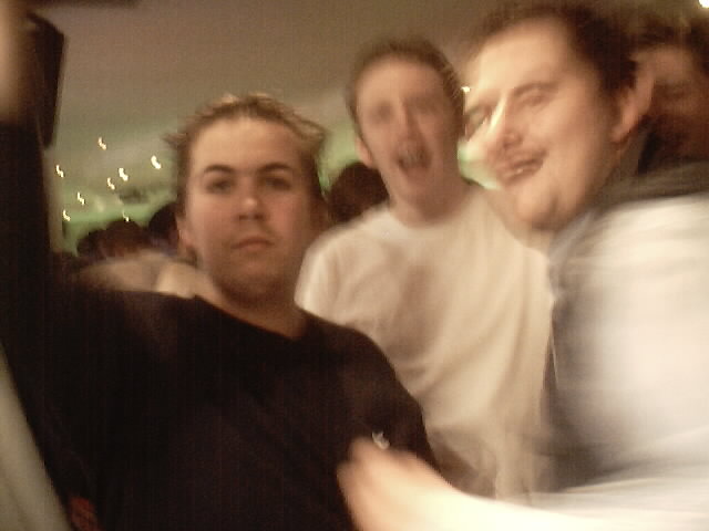 Rammo escapes from Dai's clutches to see TAT[TLE] roadie Owen enjoying the evening.