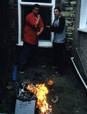 A ritual burning of a box of horrors takes place, leaving Dai & Finch looknig proud.