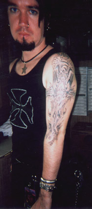 I dunno how the hell I managed this one... this is Patrick's 3rd tattoo which is rarely seen because he's always got it covered! But I talked him into letting me take a pic of it! And yes, Patrick, I did what you told me to & fixed up the picture!