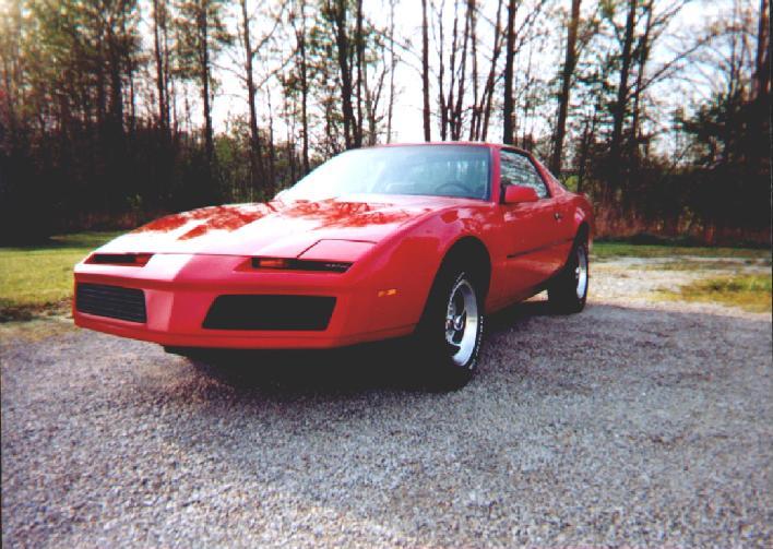 I aquired this car from my dad for helping him build a pole barn. However, at the time the car needed some work. The first thing that had to be done was replace a bearing in the front passenger's side. Both of the front wheel bearings were replaced and new brake calipers were put on the front of the car. The first major thing that I did to the Firebird was get it repainted. My dad and I did the bodywork and primer job ourselves. I then took the car to a local Maaco to have the finsih coat painted. In all I had about $350 in primer and the paintjob. The spring after I repainted the car I came to the conclusion that the old hubcaps on the car just didn't look that great. I bought a set of Z-Racing rims from Sears which really sharpened up the car. I also added a CD player to the Firebird(The new wheels and the CD player were later transfered to my 85'.)