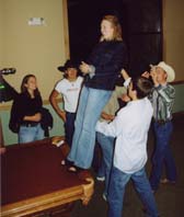 Jessica doing a trust fall. Kristine and Jessica.