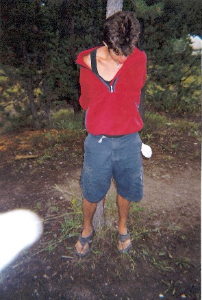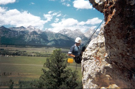 Daniel Miller with Elizabeth Reese's toe socks. Me Rappelling.