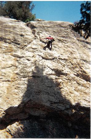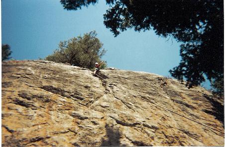 Phil Rappeling. Melissa is Climbing "Bullwinkle", Mr. Mickelson is walking away and someone else is Climbing "Open Book"