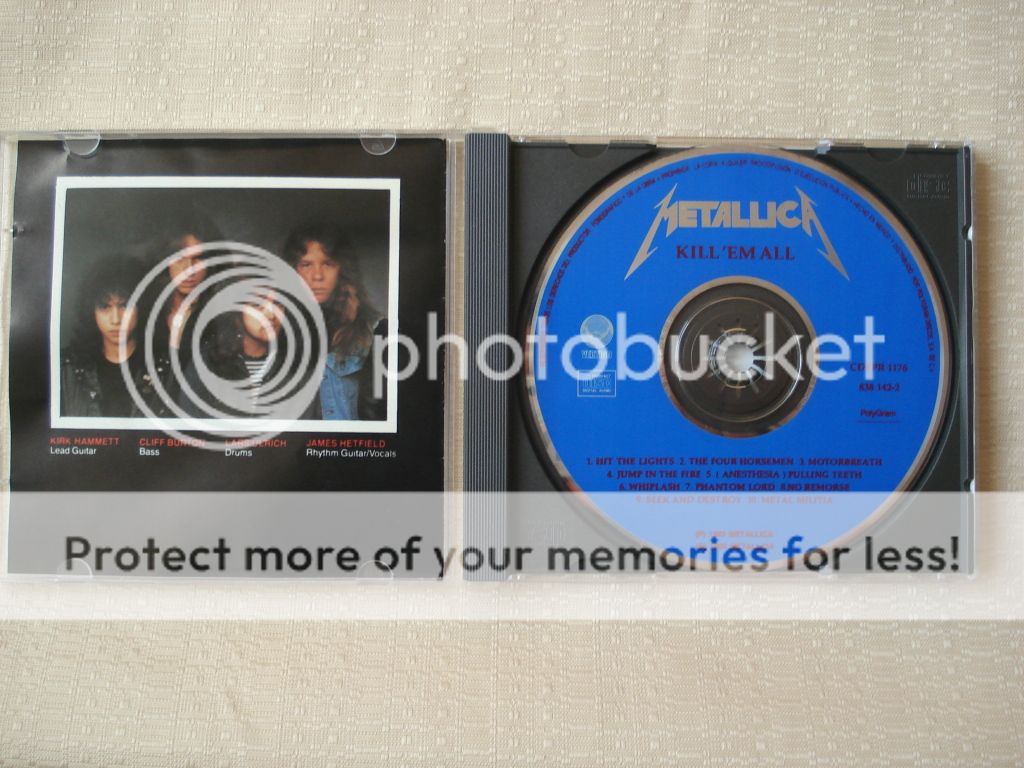 | Kill 'Em All | MFN | 1983 | France/England | CD MFN 7 | 10 | No address on backcover, Backcover Printed in England with Barcode, Carnaby address on CD, CD Made in France by MPO, Booklet Printed in England | |