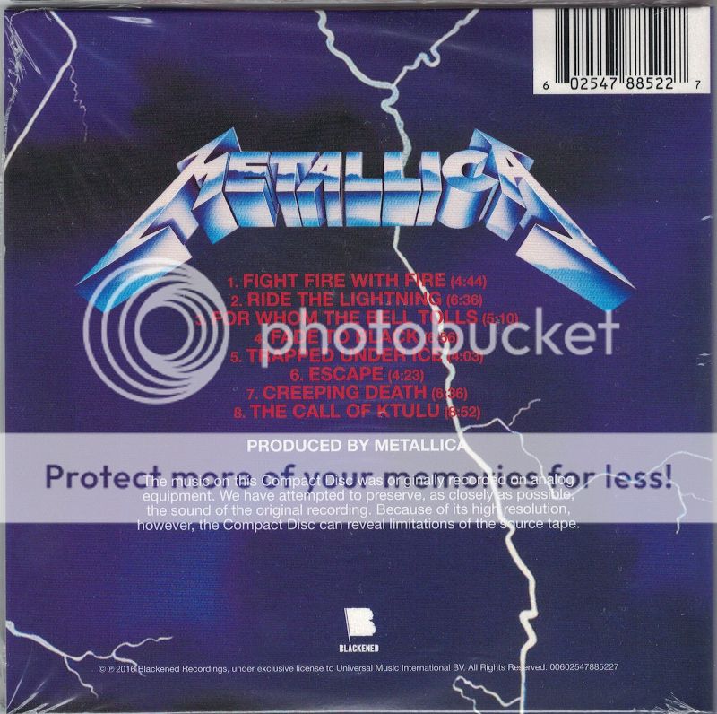 | Ride The Lightning | Blackened | 2016 | Australia | 4788522 | 8 | Remastered 2016, Warning on cover, Digipack, sealed |